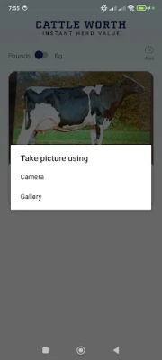 Cattle Worth is a livestock management tool designed to help users estimate the weight of cattle using image analysis. By uploading a picture of the cattle, the app processes the image through an AI-powered system to generate an estimated weight. It also retrieves real-time market rates from a third-party source to calculate an estimated value.