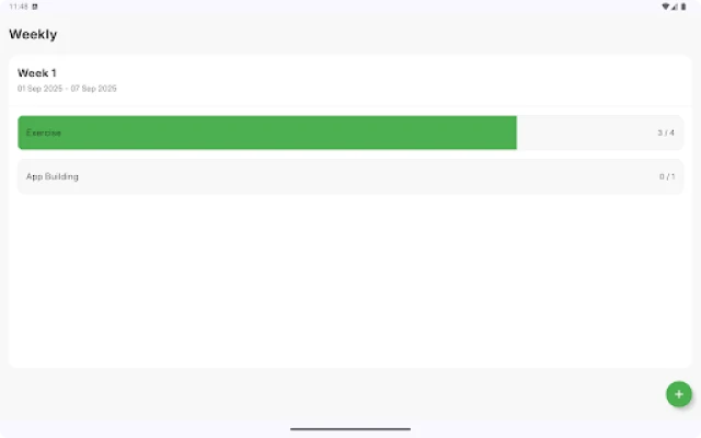 Weekly is a lightweight habit tracker designed to help you stay consistent, build routines, and achieve your goals. It provides a clean and simple way to track your progress on a weekly basis without unnecessary complexity.