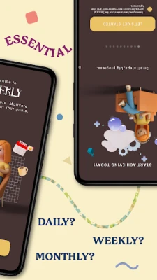 Welcome to Weekly, our app that helps you set and achieve your daily, weekly, and monthly goals. We understand that the idea of a New Year's resolution can be overwhelming and often difficult to stick to. That's why we have created a platform that allows you to set and achieve small, manageable goals, whether it's daily, weekly, or monthly.